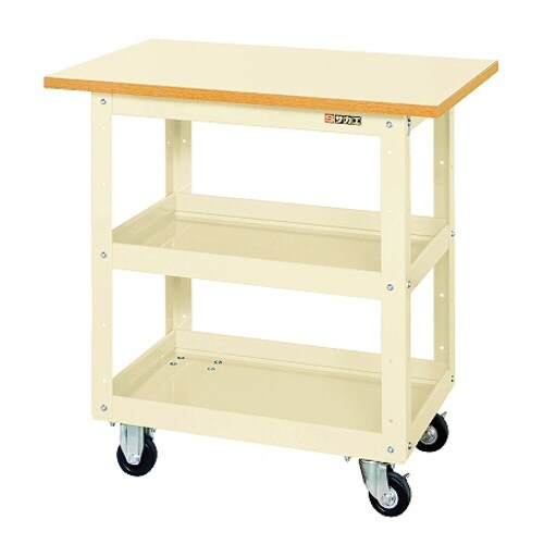 ニューCSスーパーワゴン中量タイプ 耐荷重200kg ゴム車 アイボリー 幅900奥行600高さ760mm 2段+天板付 移動式 1台 CSWA−757TJI(お客様組立て)