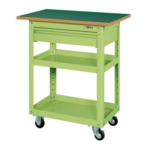 スーパーワゴン 中量タイプ 耐荷重150kg ゴム車 グリーン 幅750奥行500高さ900mm 2段+天板付 移動式 引出付 1台 EMR−1CTJ(お客様組立て)