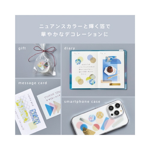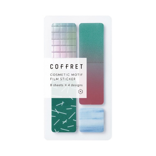コスメをモチーフにした貼ってはがせるフィルムシール「コフレ」。箔やニュアンス柄を取り入れることで、コスメの世界観をそのままデザインに落とし込み、日々のメイクのような表現を楽しめます。 |