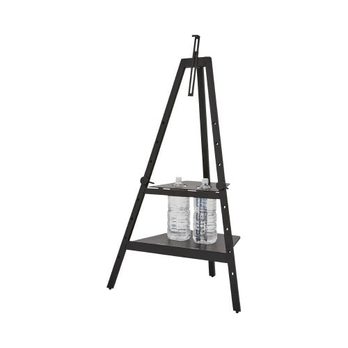 風に強い三脚イーゼルです。2Lのペットボトルを2本設置することで転倒防止になります。コンパクトに折りたためるので移動も簡単。 |