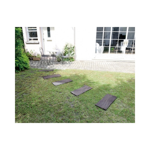 敷くだけで簡単設置。お庭の雰囲気作りに最適。木目調でおしゃれな小道を簡単に作ることができる。お庭の芝生のぬかるみ対策に。 |