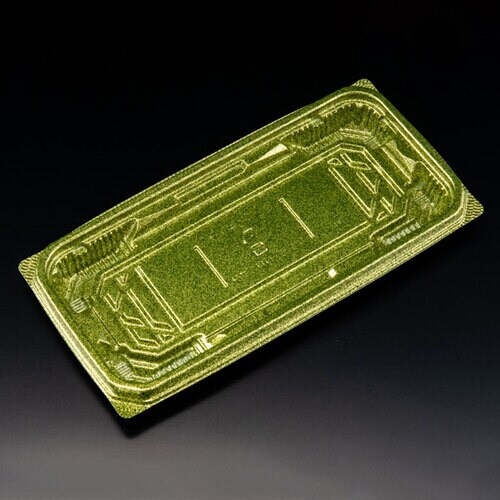 弱い力でもフタが嵌めやすく外れにくいお刺身容器中身を選ばない汎用性のある底面平タイプ金箔を散らした重厚な深緑が高級感を演出します※蓋は別売り
