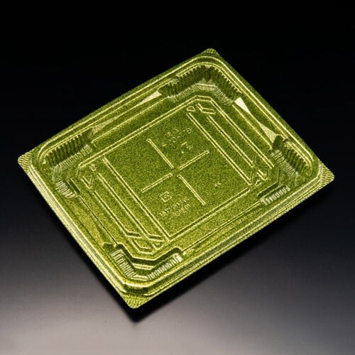 弱い力でもフタが嵌めやすく外れにくいお刺身容器中身を選ばない汎用性のある底面平タイプ金箔を散らした重厚な深緑が高級感を演出します※蓋は別売り |