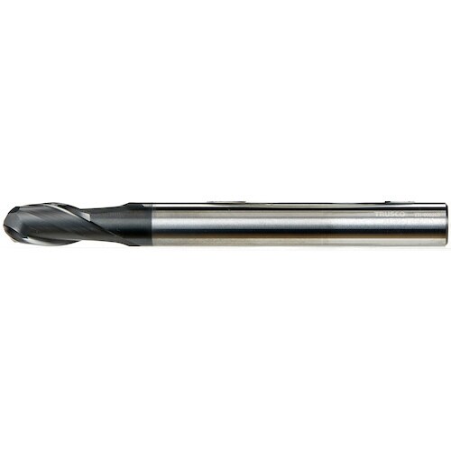 ボール半径(mm):2 | 刃長(mm):8 | 全長(mm):60 | シャンク径(mm):4 | 刃数(枚):2 | 表面処理:AlCrNコーティ…