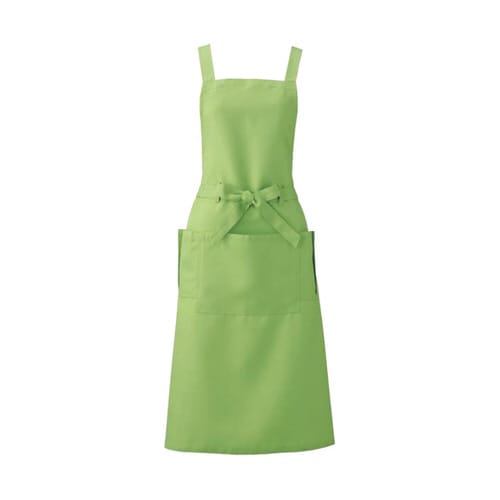 退色防止加工。使いやすい胸当てエプロン、オリーブ色。 |