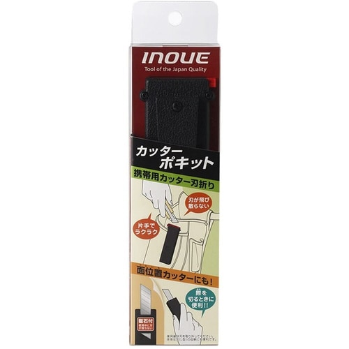 1台で2役のカッター作業の優れもの。切れなくなった刃を片手で「ポキッ」、刃が飛び散らず安全な携帯用カッター折りで、不要になった刃を収納するスペースもあります。 |