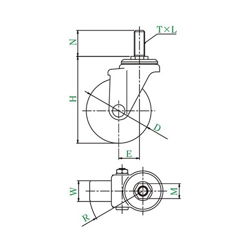 中荷重用として運搬時に使用されている一般産業用キャスターです。旋回部の構造を二段構造にする事で、スムーズな旋回が可能になります。 |