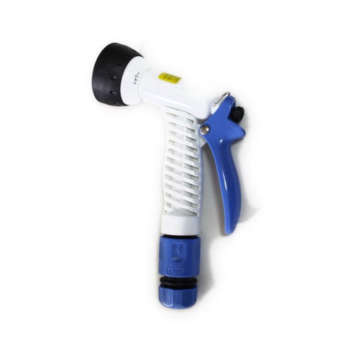 簡単操作で5パターンの水流が。(シャワー・ストレート・拡散・霧・止水)平面スクリーンにより柔らかなシャワーが。回転コネクターでホースがねじれない。庭木や家庭菜園の屋外散水に、洗車にも。 |