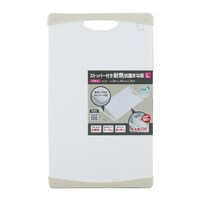 取り外しできるシリコンストッパー付き(2個)の滑りにくいまな板です。 |