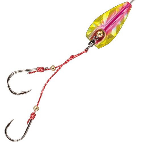 バラシ激減・高感度!リフト&フォールで妖しくゆらめくインチク形状ロングシャンクが海エビをしっかりホールドする小鯛鈎使用ヘッドとフックを遊動にする事によりフックUP後の鯛特有の首振りによるバラシを激減。 |