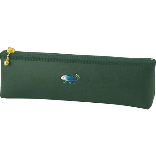 人気のワンポイントモチーフを箔押しした細めボディのマチありペンケース |