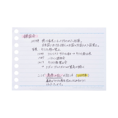 通常のB5・A4・A5バインダーに対応可能。要点や出題のまとめを書きだす。後から増えた案件情報を追加して書き記す用紙として。コンパクトですぐに書けるメモ帳として活躍します。 |
