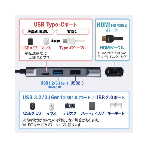 HDMIポート付 USB Type−Cハブ USB−3TCH37GM USBハブ 1個