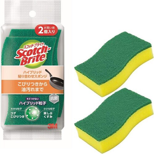 2つのパワーで汚れを落とす、ハイブリット研磨粒子つき不織布貼り合わせの抗菌ウレタンスポンジです。コゲ・こびりつきに大きな粒子でパワフルクリーニング。くすみ・茶しぶに細かい粒子でガッチリクリーニング。