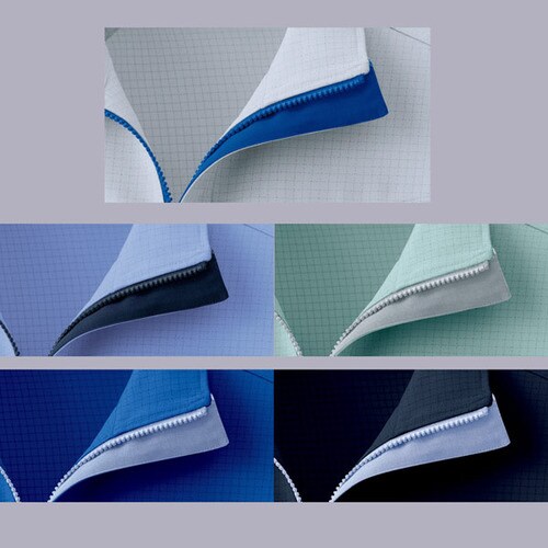 IEC規格に対応し、優れた低摩擦帯電性能を搭載した、男女共用の高性能静電服。ストレッチ性があり、透けにくいフルダル糸を使用。また、糸ホツレを抑える巻き縫いを部分的に採用しました。 |