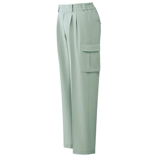 帯電防止作業服JIS適合品。動きやすさを重視したワイドシルエットのツータックパンツ。