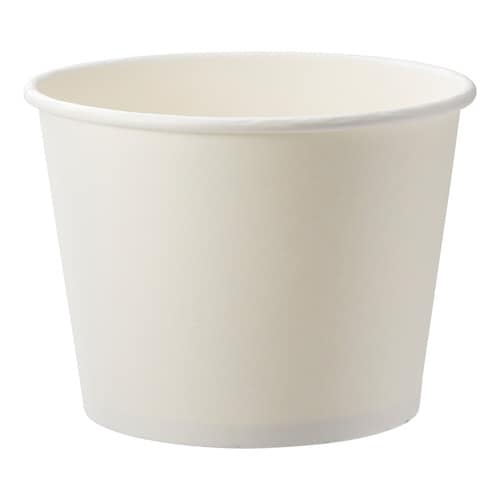 清潔感のある白いペーパーカップです。スープやお惣菜など、幅広いメニューのテイクアウト用として。アウトドアやレジャー、ホームパーティー等にもお薦めです。別売りで透明蓋があります。 |