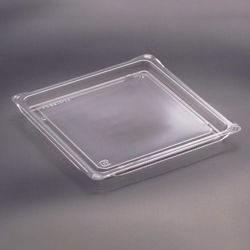 キューブ型容器「バイオカップキューブシリーズ15規格」用の内嵌合蓋です。環境に配慮し、再生可能な生物資源を一部混合した、石化由来A−PETと植物由来バイオマス素材のハイブリッド容器です。 |