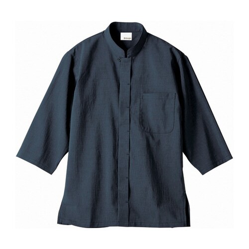 住商モンブランの飲食・カフェ シャツ、男女兼用、7分袖、ネイビー、スタンドカラータイプ |