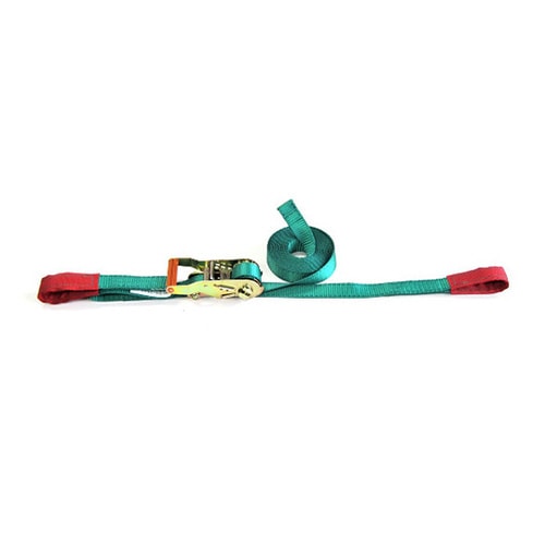 ラチェットハンドル式のベルト荷締機。簡単な動作と軽い力で強力な荷締めが可能。