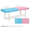 シートを2色カラーで分割することで頭足側の位置決め等に便利です。ベッド脚部を内側に取り付けることで頭足側のスムーズな施術を実現。床面との隙間を微調整できる直径6cmのオリジナルアジャスター付き。