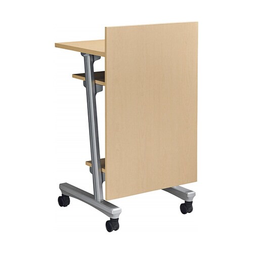 フォーマルで格調高い会議空間を演出するフラップテーブル「バリスタ」。脚部にはアルミを採用。重厚かつ直線的なデザインを表現しました。ケーブル処理へのさりげない配慮がポイントのフラップテーブルです。 |