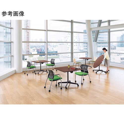 天板を中央で折りたためるセンターフラップ機構により、省スペース化と景観の美しさを両立。脚間が広く、大人数でも快適に打ち合わせができる、ミーティングテーブルです。 |