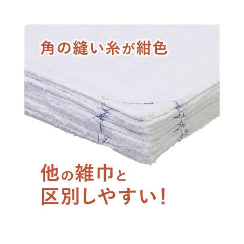 縫い目を多くしてしっかり補強、ほつれにくくなっているぞうきんです。洗濯機洗いでもほつれにくく、雑巾を頻繁に利用するオフィスや施設などで便利です。 |