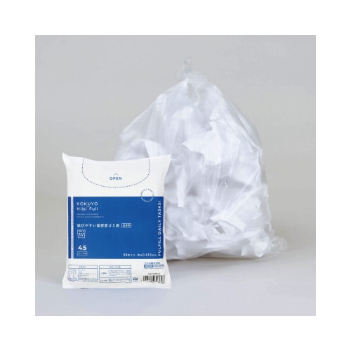 ヒビフル 結びやすい高密度ゴミ袋 45L 詰め替え 半透明 シャカシャカタイプ 厚さ0.015mm 1パック(80枚入り) シャカシャカタイプ 取っ手付き 業務用 KOKUYO HibiFull