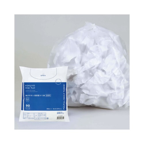 ヒビフル 結びやすい高密度ゴミ袋 90L 詰め替え 半透明 シャカシャカタイプ 厚さ0.015mm 1パック(80枚入り) シャカシャカタイプ 取っ手付き 業務用 KOKUYO HibiFull