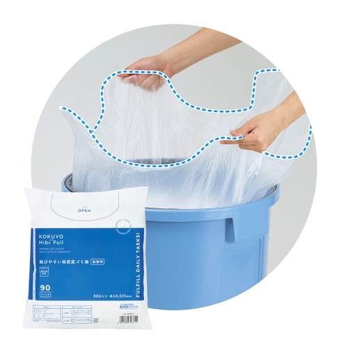 ヒビフル 結びやすい高密度ゴミ袋 90L 詰め替え 半透明 シャカシャカタイプ 厚さ0.015mm 1パック(80枚入り) シャカシャカタイプ 取っ手付き 業務用 KOKUYO HibiFull
