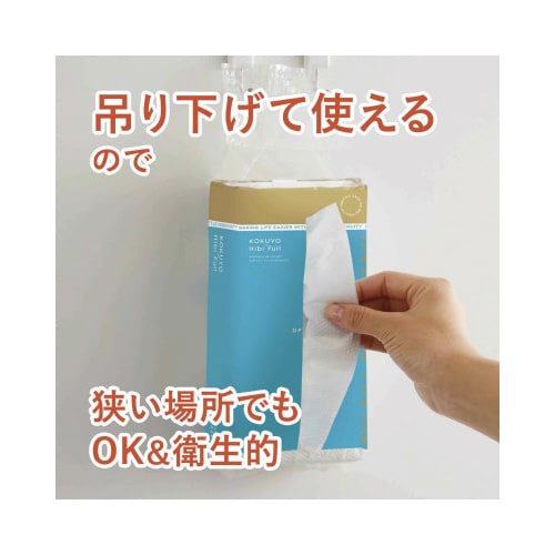 壁に吊り下げ可能で、省スペース&衛生的なペーパータオル(ハンドタオル)。吊り下げることで水濡れを防ぎます。2穴に掛けることで吊り下げが安定します。 |