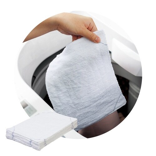 縫い目を多くしてしっかり補強、ほつれにくくなっているぞうきんです。洗濯機洗いでもほつれにくく、雑巾を頻繁に利用するオフィスや施設などで便利です。 |