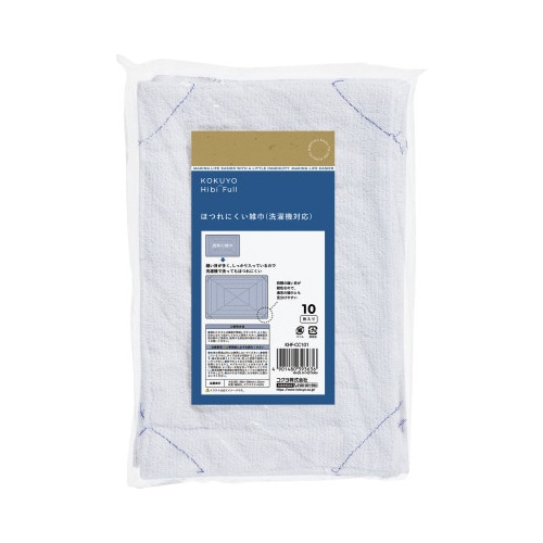 ヒビフル ほつれにくい雑巾 洗濯機対応 白 1箱(10枚入り×50) ぞうきん 雑巾 拭き掃除 補強 台拭き 業務用 KOKUYO HibiFull