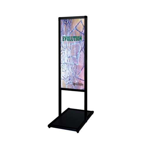 パネルがフレームと一体化したスタイリッシュな自立式直立型スタンド