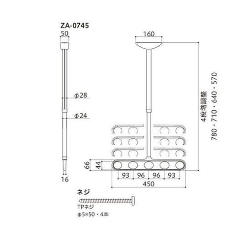 サイズ:W/450mm、H/570・640・710・780mm 4段階調整 | 材質:ベース部/ステンレス、アーム部/アルミダイカスト | コード番号…
