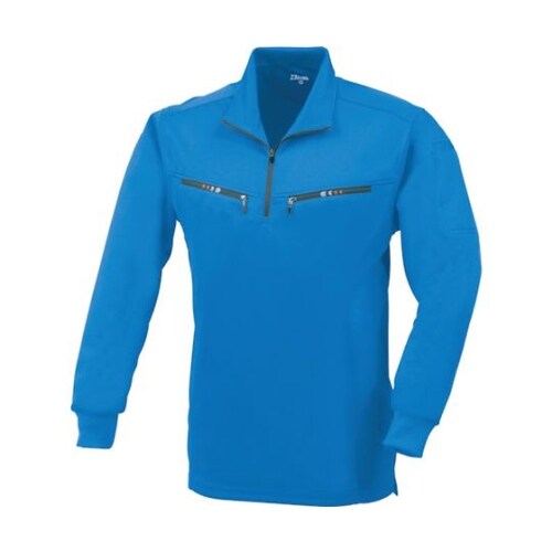 長袖ジップアップシャツ コバルトブルー