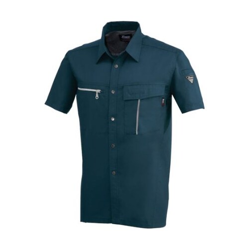 金属ボタンを使用したボタンアップ仕様のシャツにも、左右非対称の洒落た胸ポケットデザインを採用しました。 |