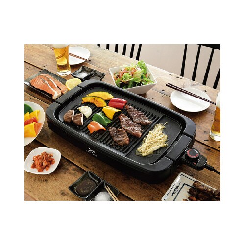 独自加工プレート搭載、煙が少ないホットプレート。平面プレートもあり。 |