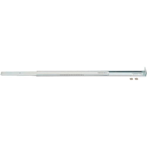 3/4スライドの2段引スライドレールです。引き出しの底にレールを取り付ける底引きタイプです。レールを全開にすると、摩擦抵抗によりブレーキがかかり止まります。さらに強く引くとレールが抜け、脱着できます。 |