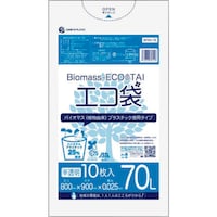 原料にバイオマスプラスチックを25%配合した製品です。高密度ポリエチレンのシャカシャカ素材の半透明ポリ袋です。 |