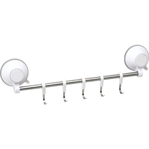 プッシュ式の超強力吸盤、赤い目印が出たら、押すことで吸着力が復活します。5連につながっているので小物をまとめて引掛けられます。 |