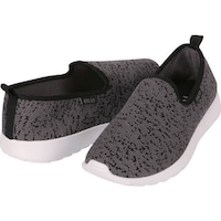 ニット素材で通気性が良く、履いている感覚がないほど柔らかでラフな履き心地の軽作業靴です。床に靴底の色がつかないよう白い靴底を採用してます。かかとを踏んで履いても型崩れしにくいように補強しています。 |