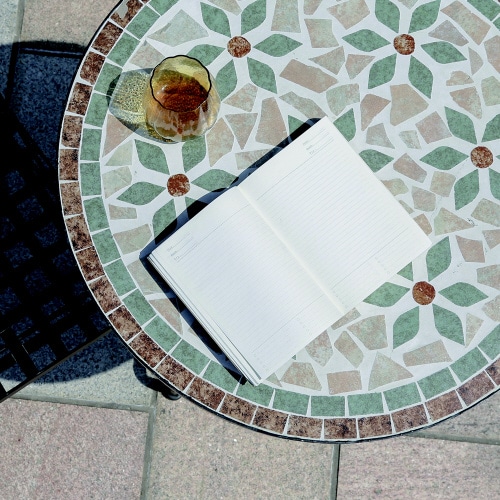 エレガントにカフェ気分!モザイク調ガーデンテーブルです。 |