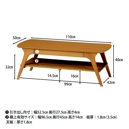不二貿易 引出し付きセンターテーブル ナチュラル 7792-0294
