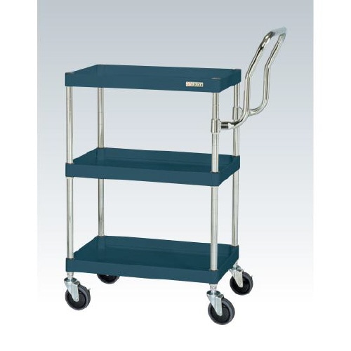 ボルトレスで組立簡単。棚板を逆さにするだけで、皿型・フラット型と組み替えることができます。安価で耐久性に優れるゴム車を採用。 |