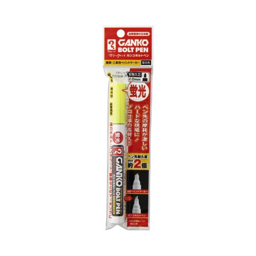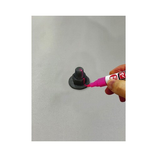 ボルト締付時のマーキングに合わせて開発した高力ボルト用マーカーの蛍光色タイプです。インキが乾くと耐水、耐候性を持ち、蛍光色なので災害時に危険な場所に印を付けるなど目立たせたいときに最適。 |