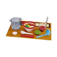 お湯と氷水で何度でも色が変わる!麺、トッピング、まほうのどんぶりの色が変わります。どんぶりに麺を入れてトッピングをのせ、スープをかけてできあがり。麺の湯切り遊びや洗い物遊びなど調理遊びも楽しめます。 |