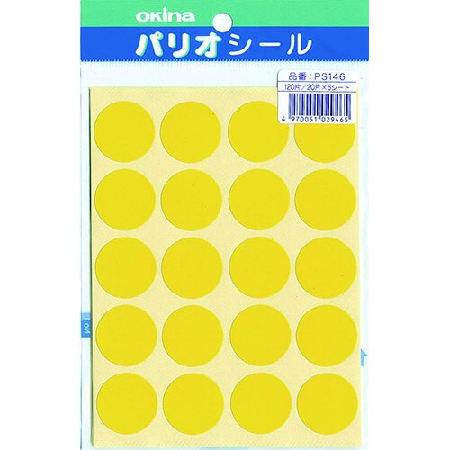 オキナ パリオシール 146 大判シール 黄 PS146X5 1セット(5パック) 7804-5514
