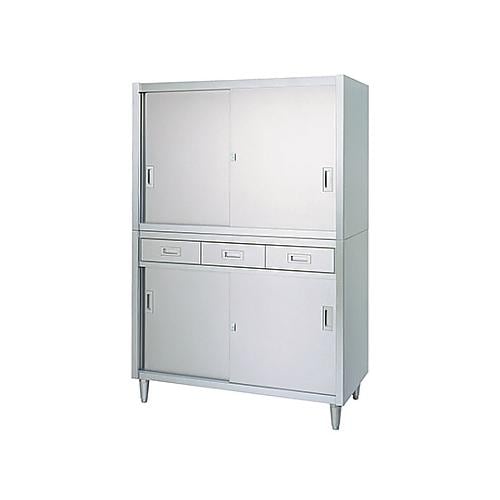 上下二分割アジャスト仕様SUS430製保管庫収納に便利な引き出し付中棚上下各一段付属(左右二分割・可変式:30mmピッチ) |
